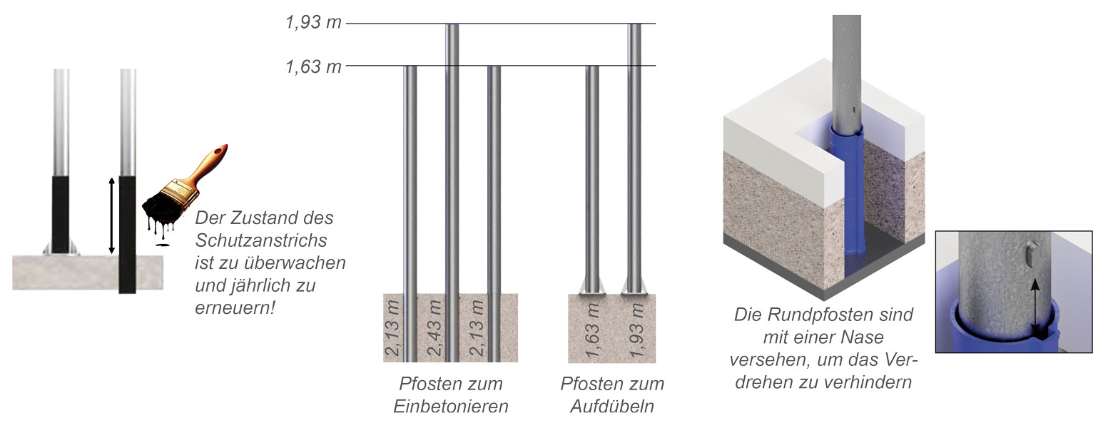 EDELSTAHLPFOSTEN ø 102, 4 mm Wandstärke zum Einbetonieren