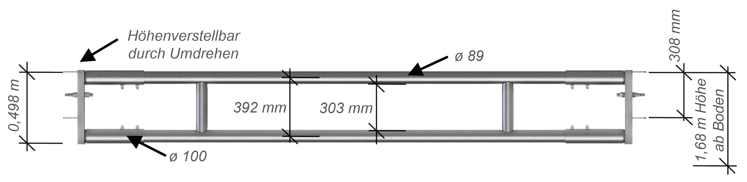 - Hergestellt aus Rohren mit Durchmesser 89 mm verstärkt