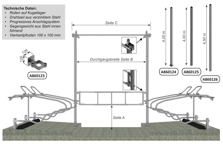 | A860123 | SCHELLEN zur Wandmontage (2 Stück pro Pfosten werden benötigt) | Stck | 3,00 kg | 82,00 € | 97,58 € |